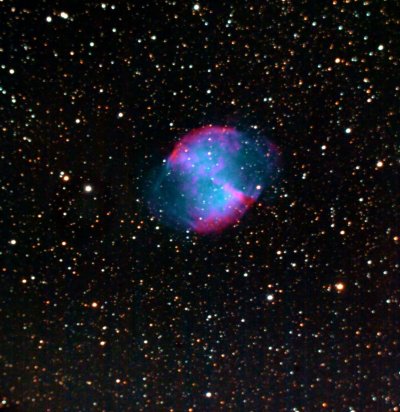 M27: 9/15/2009, 02:46 UTC, 17 - 30sec unguided exposures stacked, F6.5,