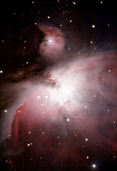 | Central region of the Orion Nebula M42 showing the multiple star Theta Orionis, commonly known as the Trapezium. Upper right is Theta 2 with its companion taken with STV Camera. LX200 10" f/10 FL 2500mm |