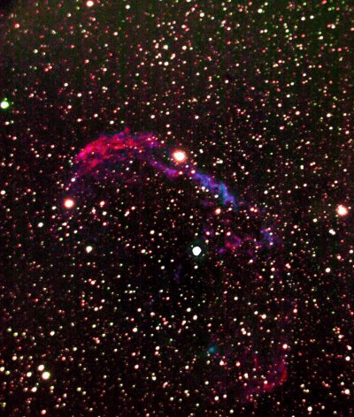 Filters:Ha,Oiii:Exposure:11LF-300sec.sub frames (0.91hrs.)(6Ha,5 Oiii)Ha in Red channel,Oiii in Green channel,